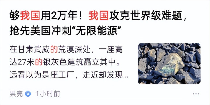 曾经美国认为该技术无法实现所以将其抛弃,如今它却助力中国跨入“无限能源”国家。
