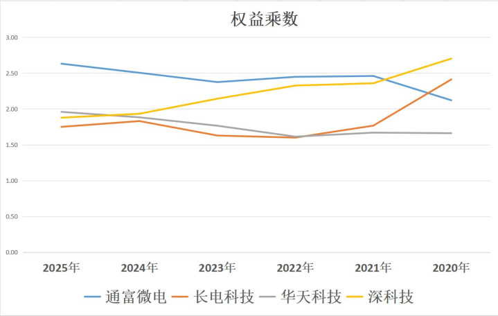 财务杠杆:通富微电>华天科技>深科技>长电科技