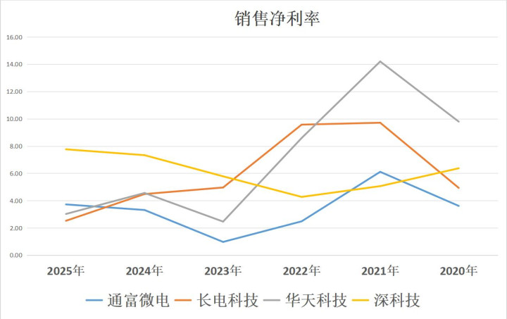 盈利能力:深科技>通富微电>华天科技>长电科技