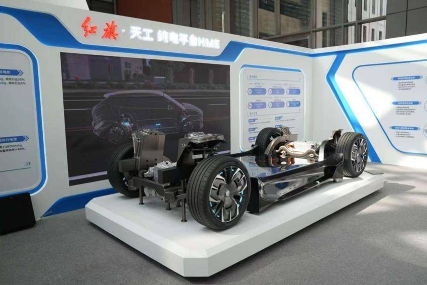 中国一汽创新成果汇报展上的“红旗·天工”纯电平台HME。人民网记者 李洋摄